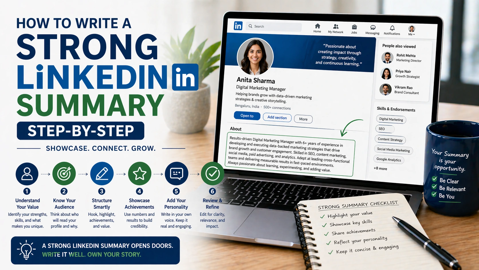 Yet the majority of LinkedIn summaries in India and globally are either blank, copied from a resume, or filled with buzzwords that say nothing meaningful. This guide will change that. You will learn exactly what to write, how to structure it, and why certain approaches work better than others — with real examples you can model.