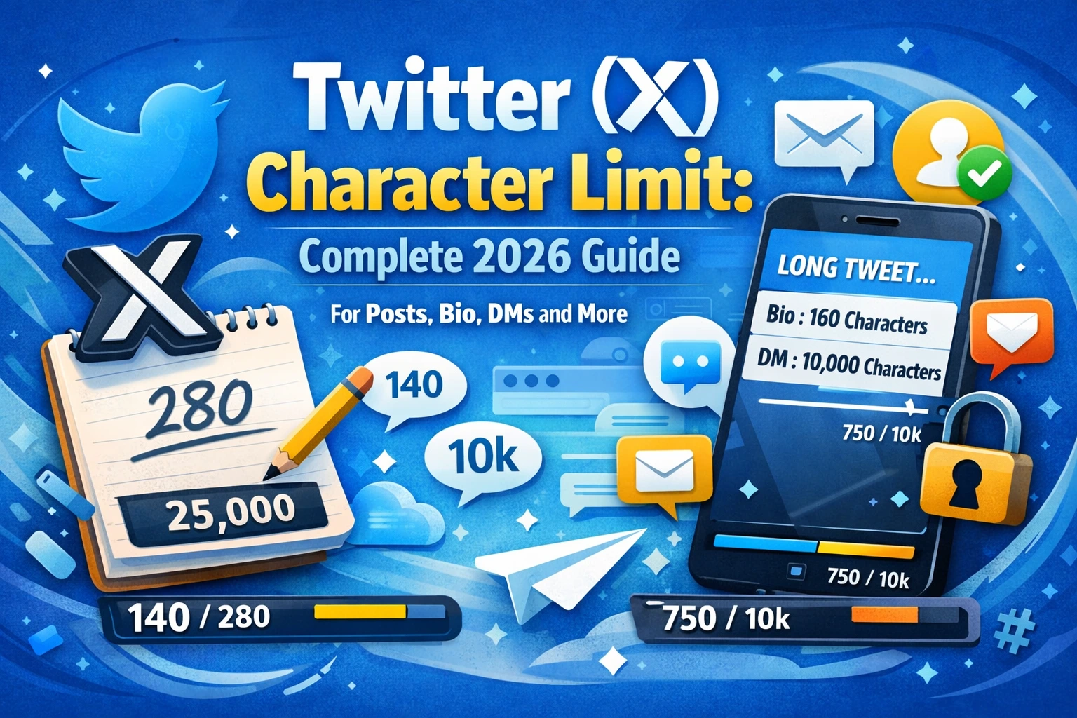 This complete 2026 guide covers the character limit for every major field on X, including posts (formerly tweets), bios, direct messages, usernames, display names, alt text, polls, and advertising. You will also find practical writing tips, a comprehensive quick reference table, and answers to the most common questions about character limits on X.